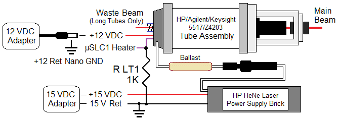 To stabilize the laser so that the position of the modes is under automatic control with a Zeeman beat requires some electronics to first run the tube in "Preheat Mode" so that the temperature of the tube/heater combination levels off somewhat above ambient, and then to "Lock Mode" to allow the output of one or both photodiodes to take control.