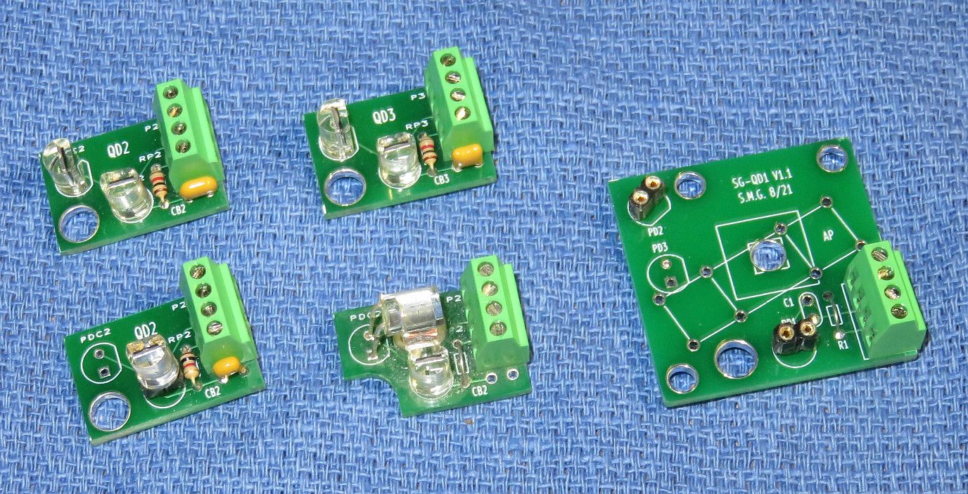 Various SG-DP1 PCBs: Single Channel, Two Channel, with PBS and Beam from Behind, QD1 Modified for AB2, Mounted on KMS, QD1 Quad Decoder using AP and bits of CP Sheet