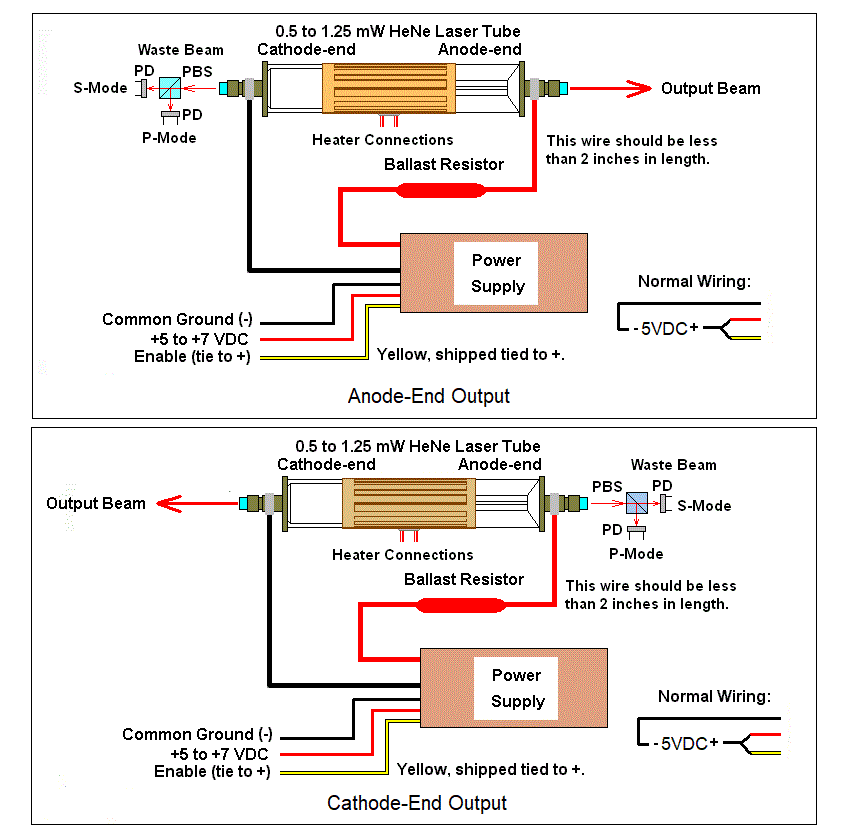 Copper-Covered HeNe Laser Power Supply Brick Wiring Diagrams