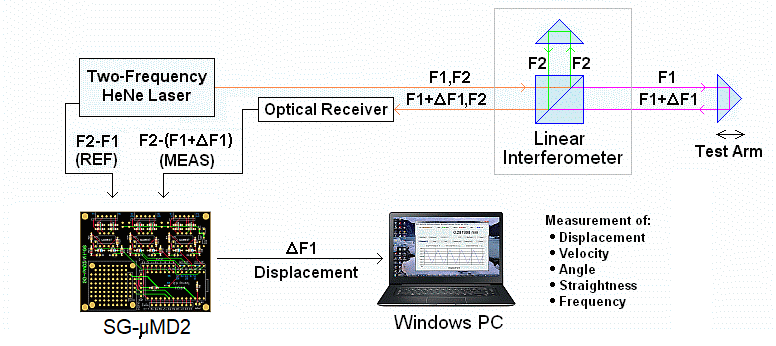 µMD2 can also be used with angle and straightness optics, but those from HP/Agilent are extremely expensive, even surplus. However, in principle, these can be built from less expensive standard parts.