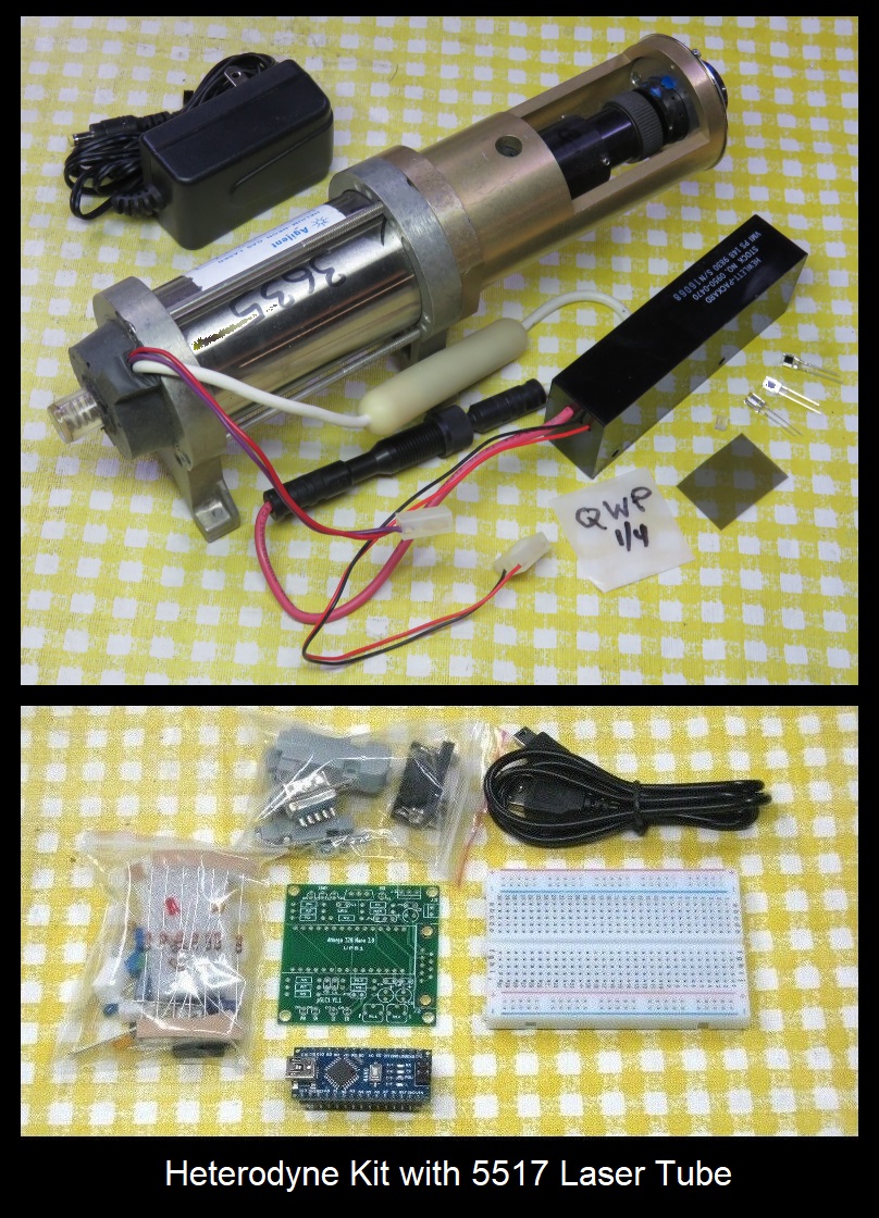 This document contains notes on the construction of a two-frequency Zeeman HeNe laser using the tube assembly from a Hewlett Packard (HP), Agilent, or Keysight 5517 B/C/D laser or similar Z4303/N1211A tube. These are fully functional but do not meet specifications for any standard model and/or have an output power lower than minimumm spec. But they are still useful for education/research/experiments. The photos below show a set of typical parts: