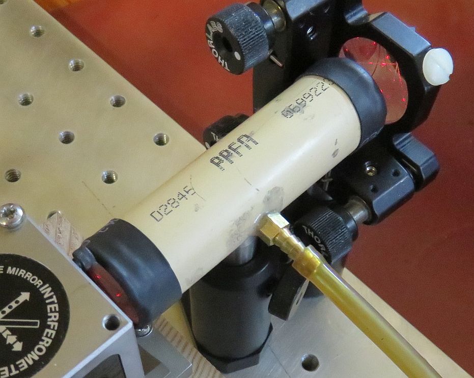 Where the Path Length Difference (PLD) between the two arms is small, the requirements for the laser are not very stringent. In fact, for very small PLDs, an LED or even a totally incoherent source like an incandescent lamp may be substituted for the laser. However, to be useful for the PLDs necessary for most applications (millimeters to 10s of meters), the light source must be a laser. And not just any laser, but one that has a narrow "linewidth". While the popular concept of a laser is of a light source that is monochromatic (single color or wavelength), in reality most lasers do not even come close. It takes careful design and implementation to achieve that. For these metrology applications the laser should ideally produce an output that is a single optical frequency with a linewidth approaching zero. In practice, it isn't that narrow but can result in a linewidth of much less than 1 MHz, resulting in a usable PLD of 100s of meters. This is usually a low power stabilized HeNe laser. However, for PLDs of a few inches, a common (much less expensive) unstabilized HeNe laser will be adequate. Within this range, all the modes will be sufficiently correlated and the fringe contrast/signal amplitude will be acceptable.