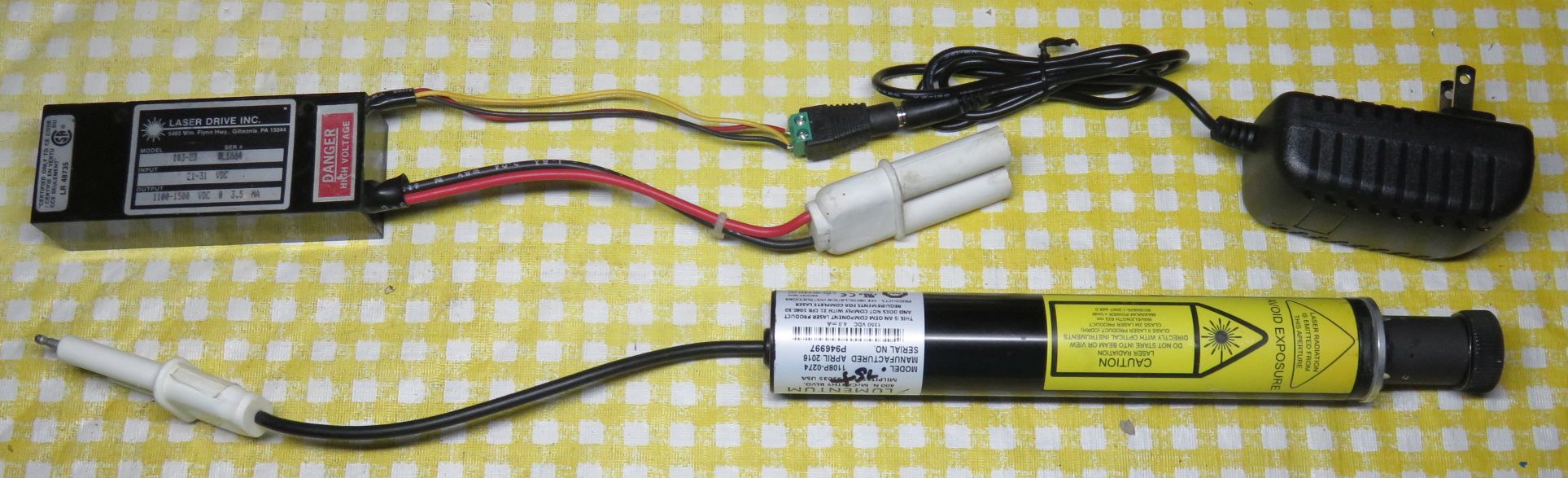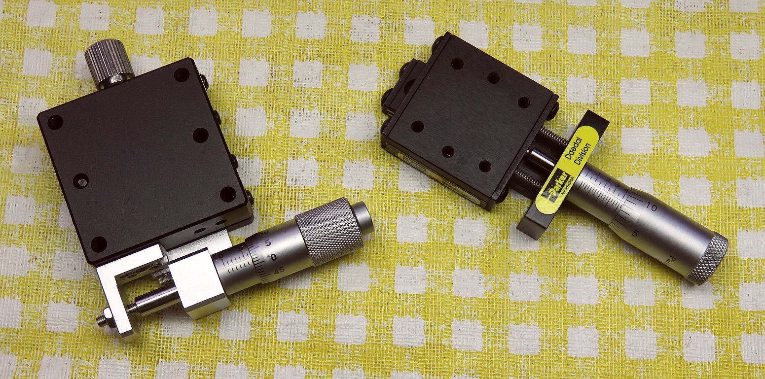 But first are annotated photos of the V2.1 setups for both Homodyne and Heterodyne with all the optics on the PBS cube for reference. V2.0 is virtually identical except for the height of the optical centerline. V1.0 and V1.5 (homodyne only) will be generally similar except primarily for the custom un-anodized breadboard and classy wood block PBS mount. But this should serve for parts identification. Click on the relevant annotated graphic for a high resolution view displayed in a single new window or tab depending on your browser's settings.