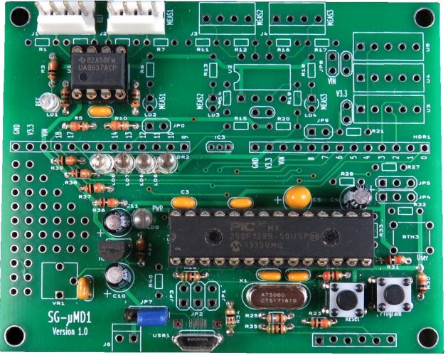 If only interested in running the PIC32 for other purpsoes, or for downloading the bootloader or other firmware using MPLAB, it's even simpler. Go to Assembly Instructions for the SG-µMD1 for MPLAB Version 1.0 PCB.